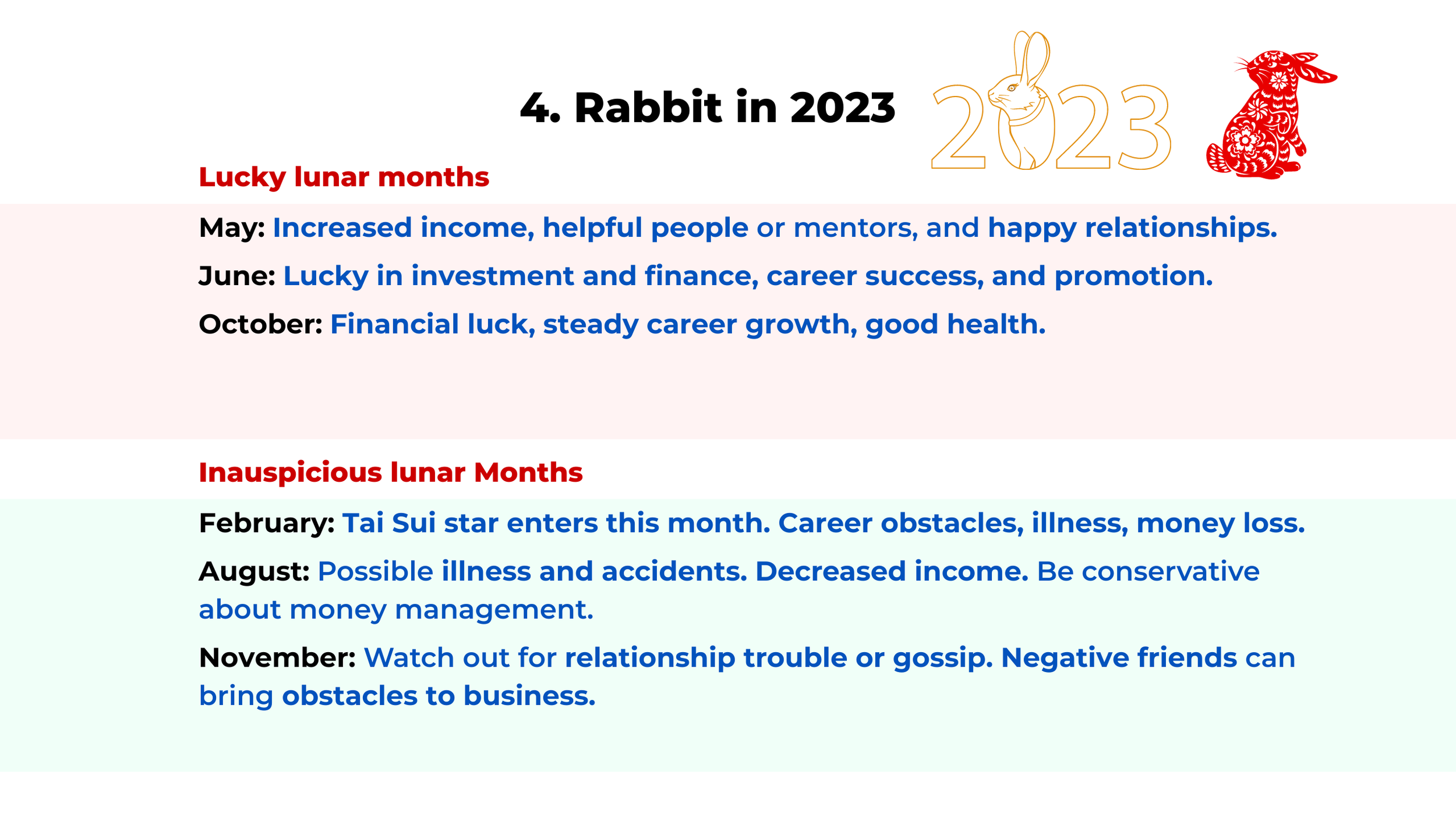 The top 3 lucky and unlucky lunar months for Rabbit in 2023
