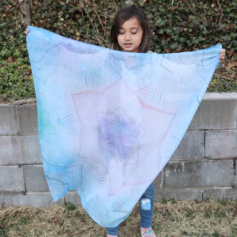 / Shih-tien WuSilk scarf painting on a square Mandala design with Inktense block